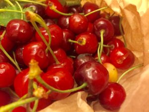 市場には他にもたくさんの果物や野菜があり、どれも新鮮!とり急ぎチェリー購入。→前にうちにいたネコの名前がチェリーなのでついつい。。(笑) 自然な甘酸っぱさが最高でした。ジャムもありますから、皆さまいつでも教室で試してみて下さいね。