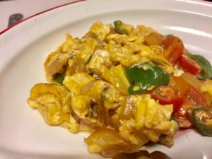メネメンはトルコのお野菜入りスクランブルエッグ。ポイントはエシレバターとパプリカパウダーを入れること。これで味にコクとまろやかさが出るのです。パンとの組み合わせはお休みの日の朝食にぴったりですね。
