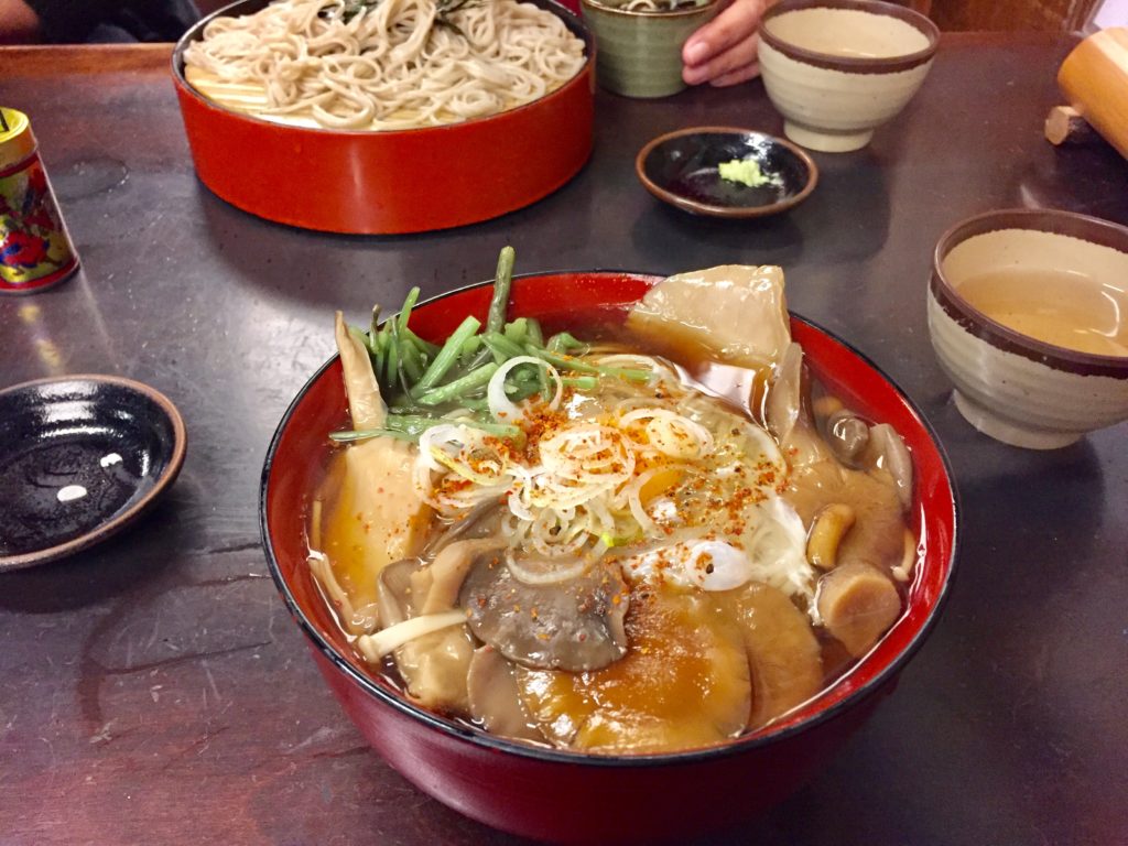 名物のおそば。寒かったのであったか山菜そばを。