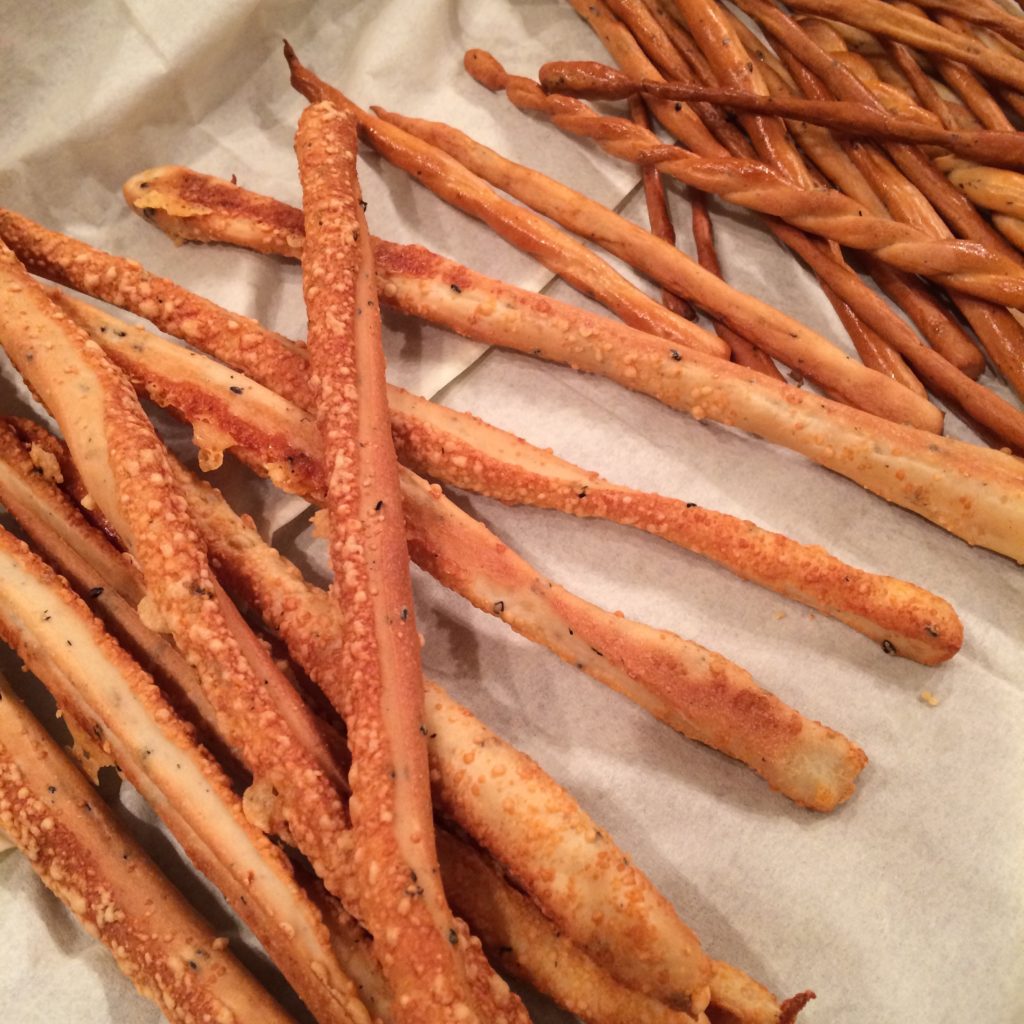 グリッシーニは、丸パンと途中まで行程が同じの成型が異なるパン。これまた良いあんばいにころころと転がして棒状に成形し焼くだけのお手軽パンです。