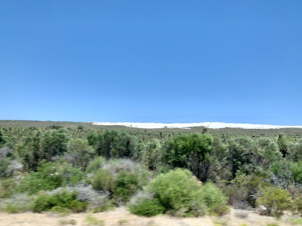 向こう側に見える白いのは砂丘です。