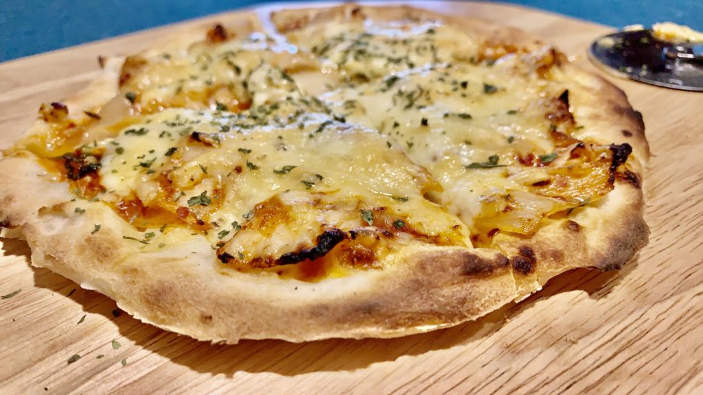 300℃の高温で一気に焼き上げますので、こんがり熱々のもっちりピザに仕上がります。基本具材はキムチなのですが、キムチが苦手な方のために、ドライトマト、ぬか漬け、イワシ缶、アボカドなどの他の具材もご用意しておきます。