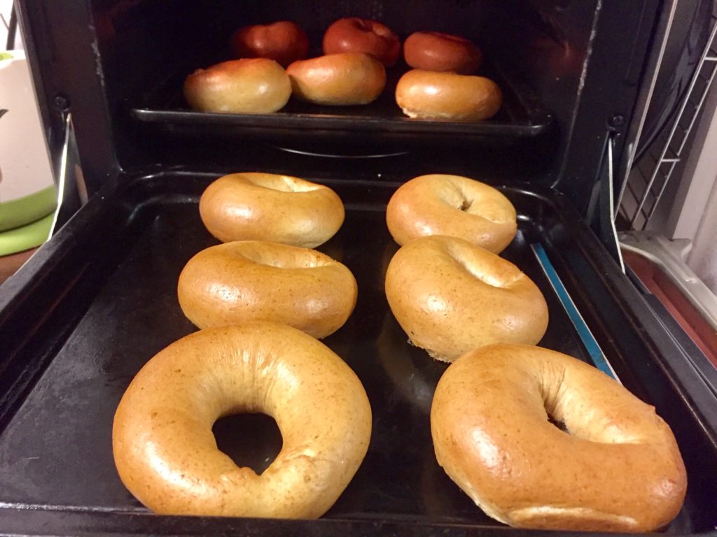焼き立てのベーグルはアツアツでもちもちしていて絶品です。教室で焼くパンはどれも一個がずっしりしていますが、このベーグルもしかり。