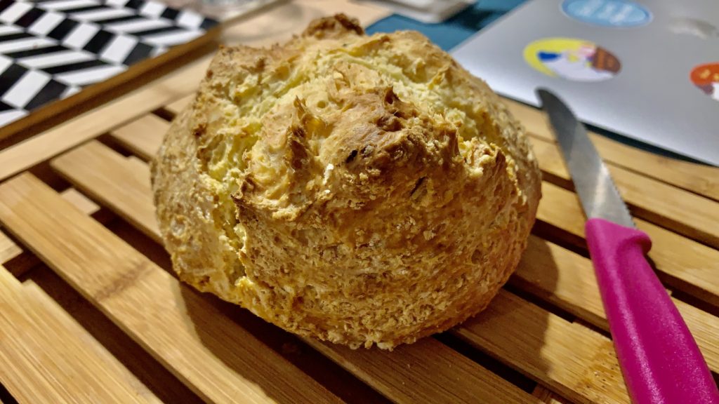 お持ち帰りいただけるように小さめのソーダブレッドを焼きます(何かハーブを入れて、ローズマリーとか)。※現地だとずっしりと大きくて重いのが多いです。それを切り分けてみんなで食べるんです。