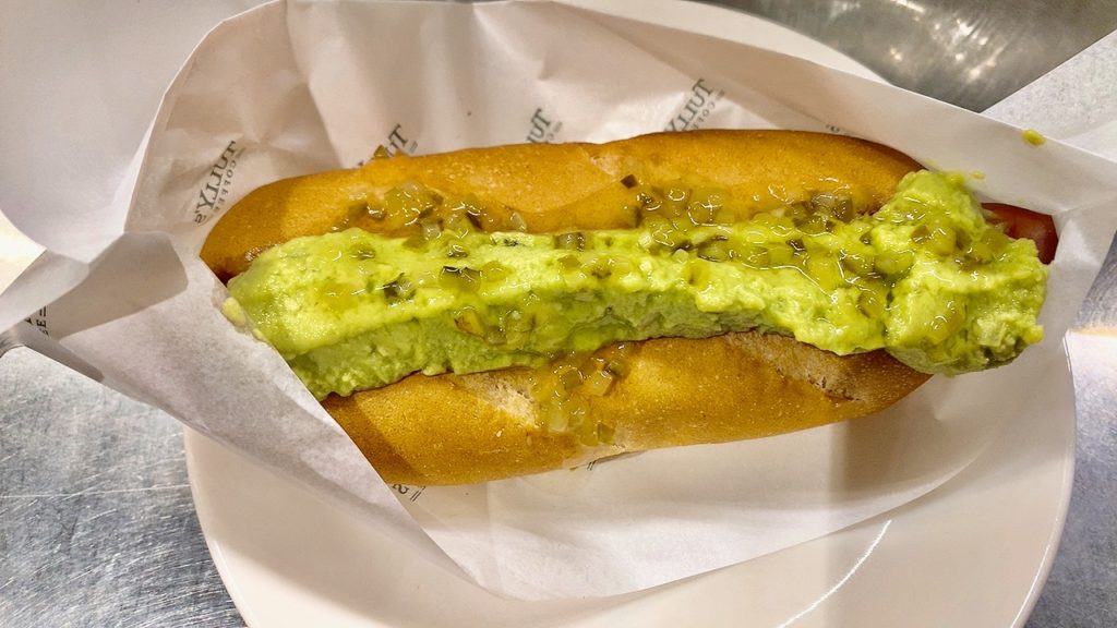前にバーガー用のバンズは焼きましたが、そういえばドッグバンズは焼いていなかったなあと思い、ヘルシーなアボカドとぴりりサルサ風ソースを組み合わせたぴりりドッグです。