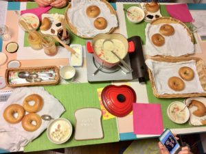 焼き上げて頂いたパンと、お野菜を中心としたサイドメニュー料理(パン同様レシピを用意していますので皆さんでお作りいただきます)でご試食をお楽しみください。パンの発酵の合間にはプチワインとアミューズでほっとひと息。試食後のお茶タイムにはオーガニックハーブティやコーヒーをご用意しています。