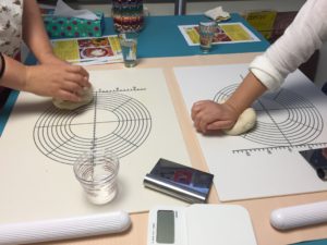 ①ヨーロッパの食材や安心の小麦粉(北海道産、九州産)、安全なミネラル浄水を使用して本格的手ごねパン作り♪(パンこね機も用意していますのでご希望の方はお申し下さい)。