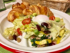 ヘルシーな食材(野菜類)を中心としたお料理(皆さんで作っていただきます、レシピあり)と一緒に、焼き上げたパンを試食。メニューにピッタリ合うプチワインもご用意しております♪(ノンアルコールをご希望の方は事前にお知らせ下さい)